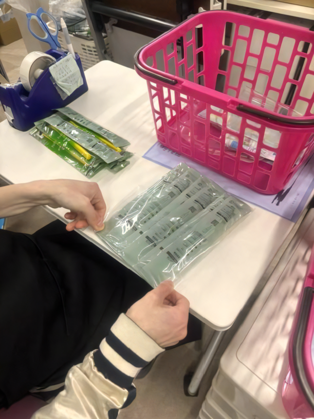 受託部門では袋詰めやラベル貼りなどのシンプルな業務が中心で、決まった手順で進めるため、初めての方も始めやすい内容です。自分のペースでコツコツと取り組めます。