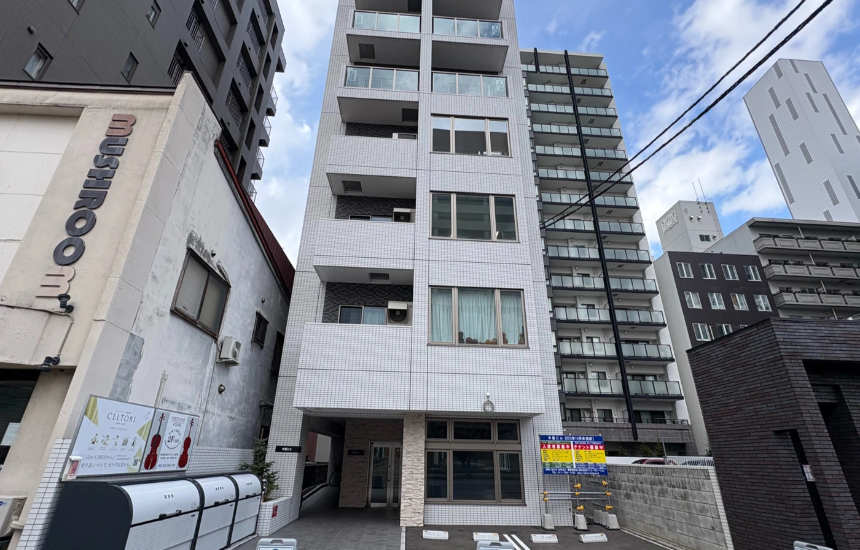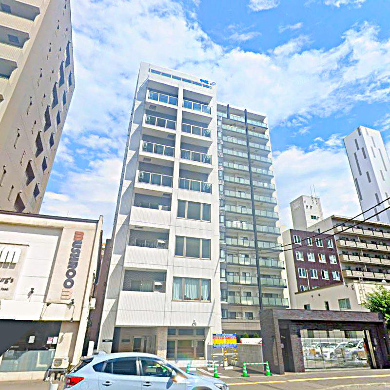 左手側に、9階建ての「中鉱ビル」が見えます。3階に「リスタル札幌」が入居しております。