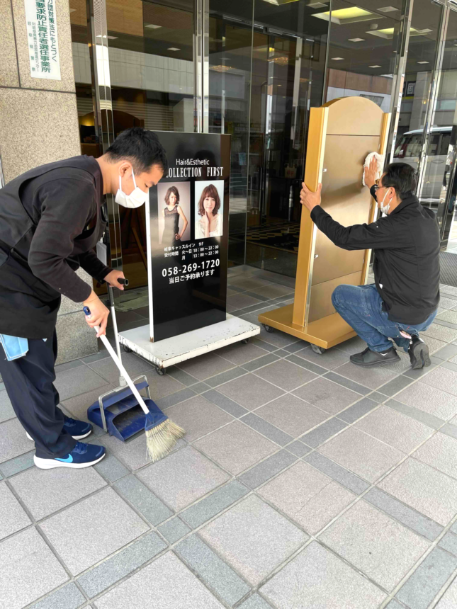 岐阜駅近くのビジネスホテルでの共有場の清掃を行っています。